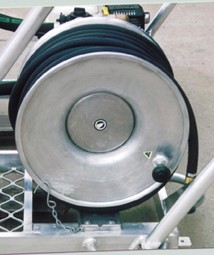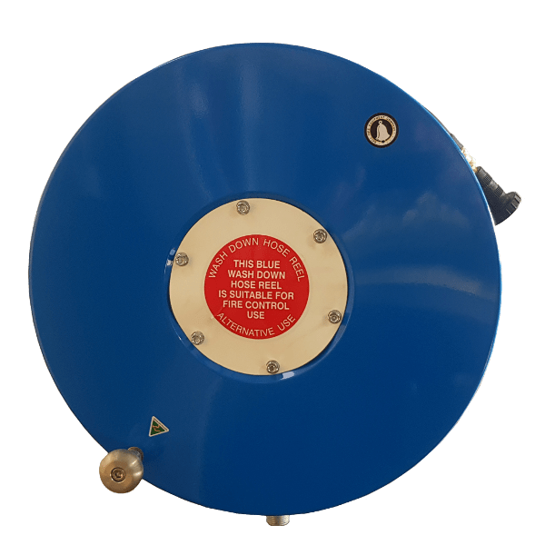 BELL REEL heavy duty, powder coated / corrosion treated steel Washdown Hosereel fitted with winder handle / axle bearing and colour coded blue (washdown) to stand apart from standard Plant Red Fire Hosereels.– Reel fitted with 30m x 20mm air/water BlackRubber Delivery Hose rated @ WP 2500 kPaBP 6000 kPa.